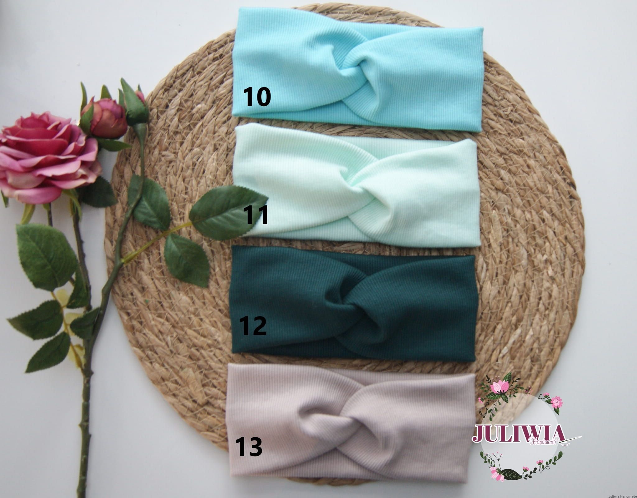 Opaski prążkowane szyte na podany obwód główki lub wiek dziecka. Świetnie dopasowują się do głowy dziecka.